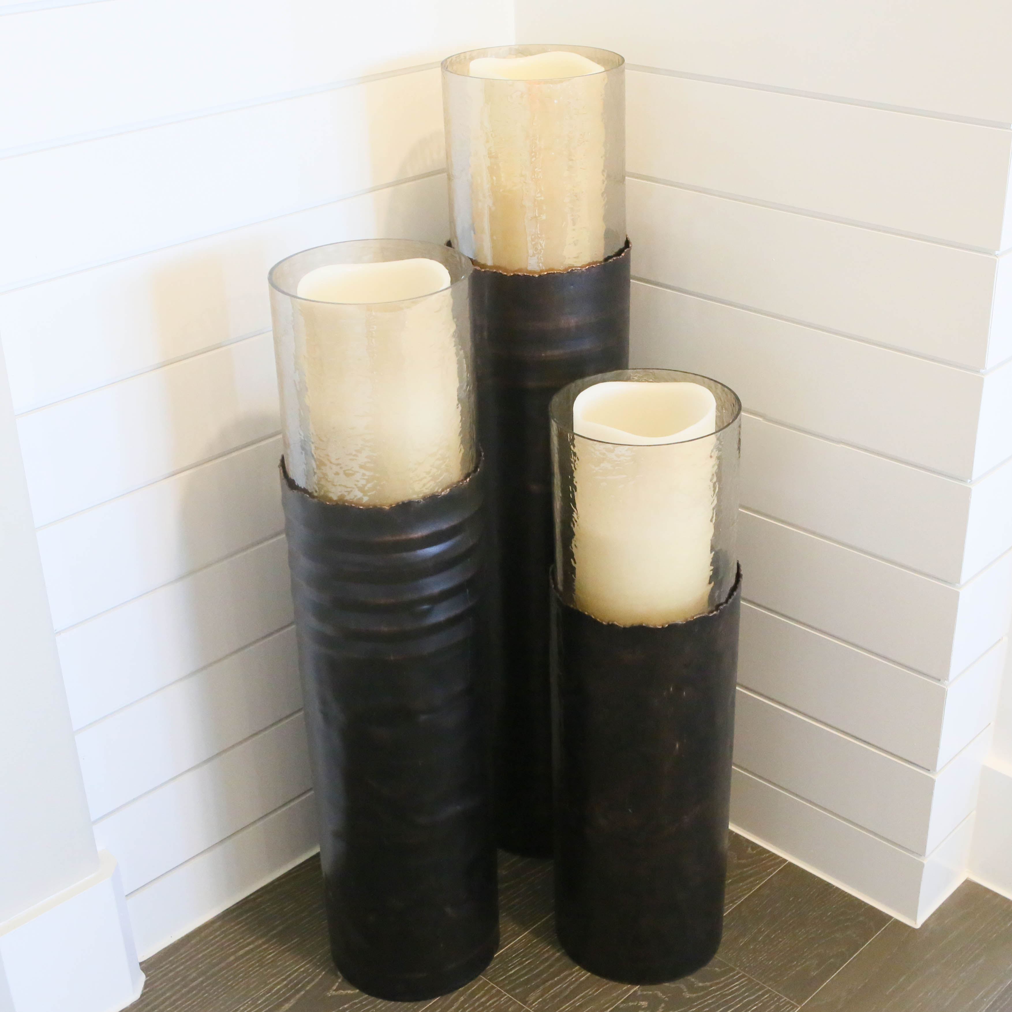 And whether floor stand candle holders is 1 color, 2 color, or 6 color. Aluminum surround at each end of the hurricane lamp candle holder. This item comes shipped in one carton. Pier 1 large glass & silver floor standing pillar candle holders. Add to favorites glass hurricane, set of 6.